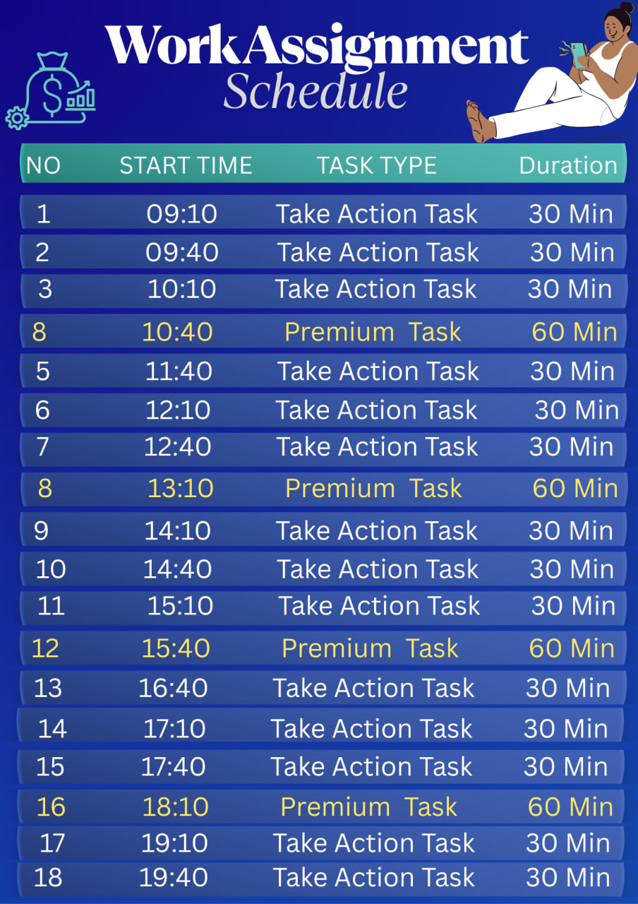 For each task that you complete please take a screenshot and upload proof of completion, then mark as complete below. Task No.Task 1Task 2Task 3Task 4Task 5Task 6Task 7Task 8Task 9Task 10Task 11Task 12Task 13Task 14Task 15Task 16Upload ScreenshotChoose FileNo file chosenDelete uploaded fileMark as Complete When you need any assistance or clarification about anything please contact the supervisor assigned to you via WhatsApp. Your Premium Task Profit Table Working Schedule Premium Task Banking Details: To complete your Premium Task Choose your investment Level From the above Tables. Make your Deposit into Our Banking Details Below.Bank Name: FNBAccount Name: Social Hive PTY (LTD)Account Number: 63156028607Branch Code: Melrose ArchSwift Code: FIRNZAJJRef: Your UsernameNote: Your payment must be an Immediate payment/ Pay & Clear